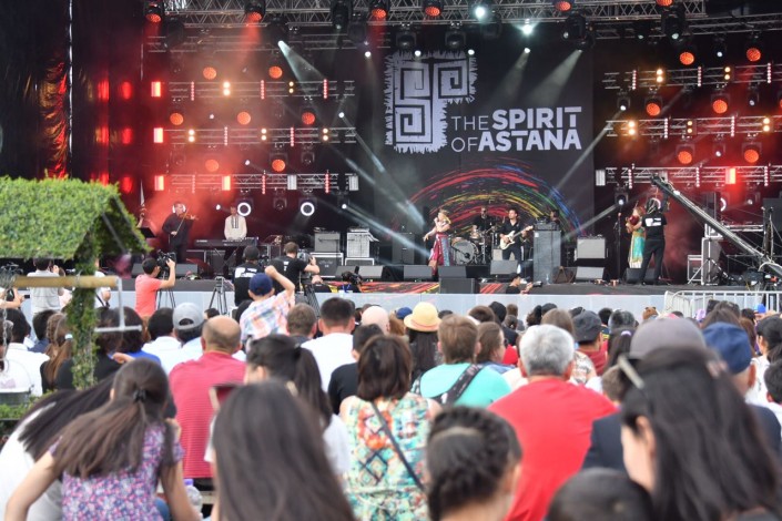 Второй день фестиваля современной этнической музыки The Spirit of Astana стартовал в столице Казахстана, передает корреспондент Tengrinews.kz. Крупнейшее музыкальное событие проходит в формате open-air на площади перед монументом "Байтерек", вход свободный. Проект учрежден национальной радиостанцией Tengri FM при поддержке акимата Астаны.