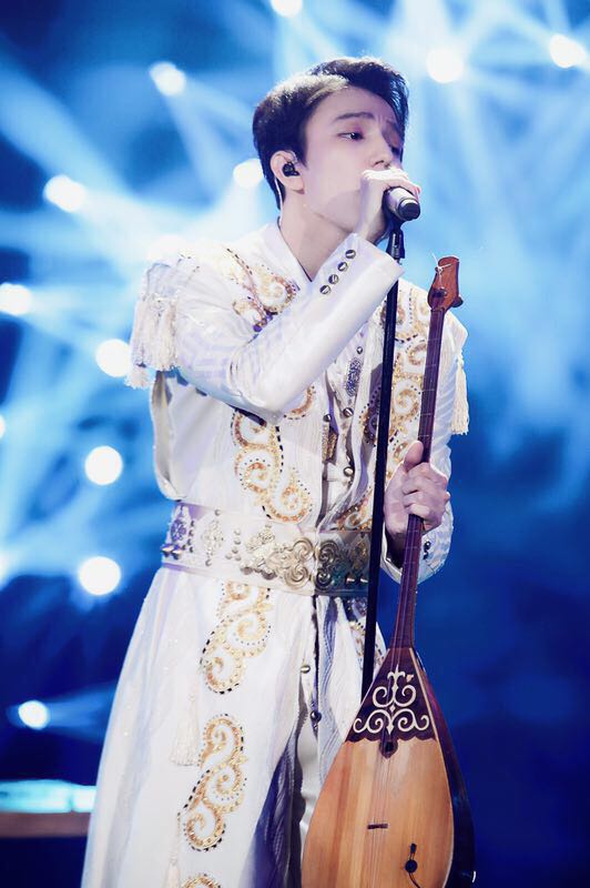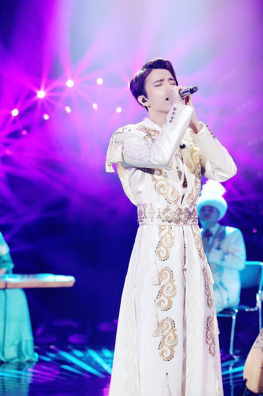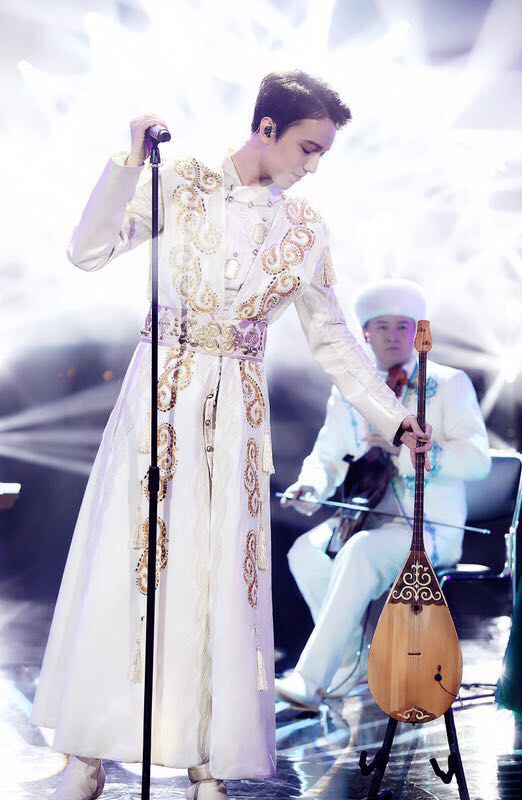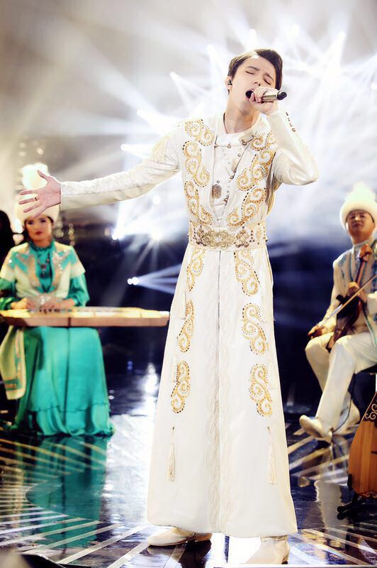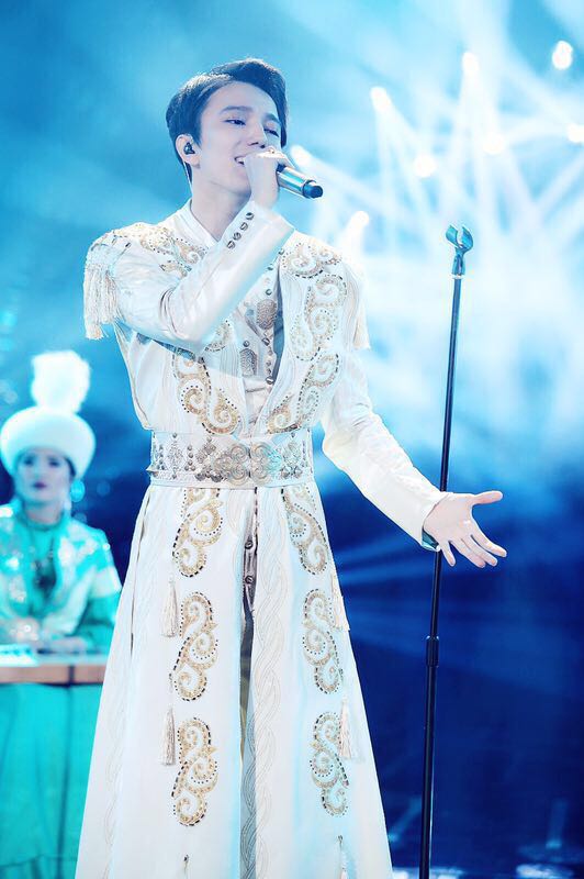 В казахском костюме Димаш Кудайберген исполнил казахскую песню "Дайдидау" в сопровождении народно-инструментального ансамбля Казахского национального университета искусств, студентом которого он является.