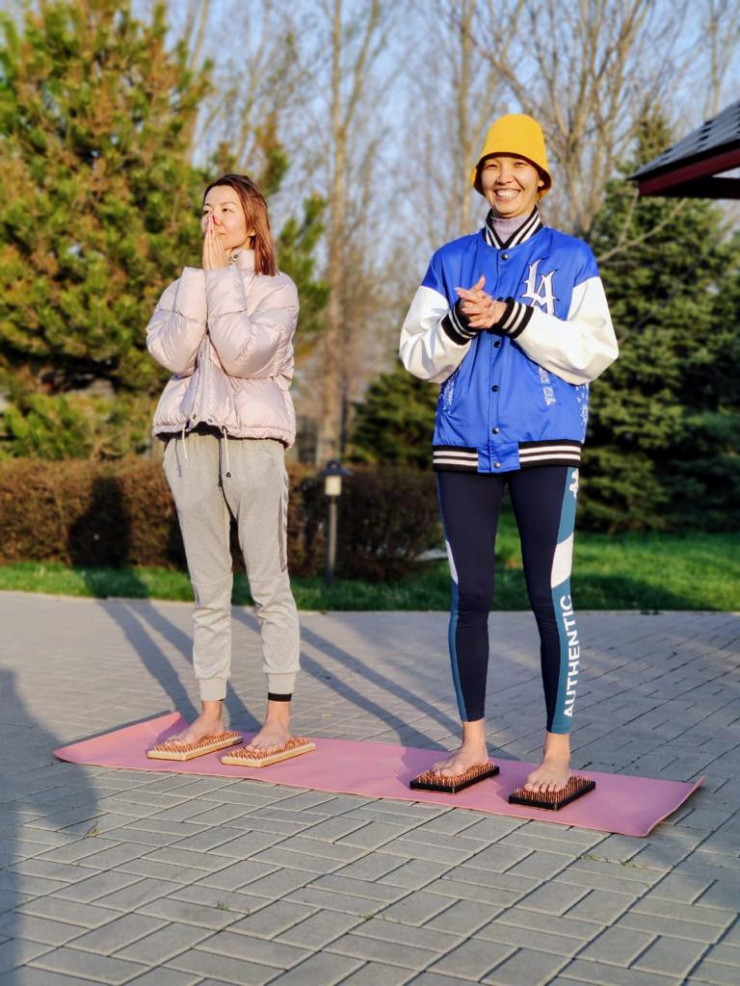 "Что касается новых возможностей и исполнения желаний. Однажды мы шли по парку Первого Президента, и тут одна из девушек говорит: "Я тут решила кое-кого пригласить и разнообразить нашу практику". Каково было мое удивление, когда этот человек разложил перед нами доску с гвоздями! Встать на гвозди было моим давним желанием. Я и раньше слышала об этой практике и сказала себе, что при первой возможности встану на гвозди. И тут они разложились передо мной", - вспоминает алматинка.
