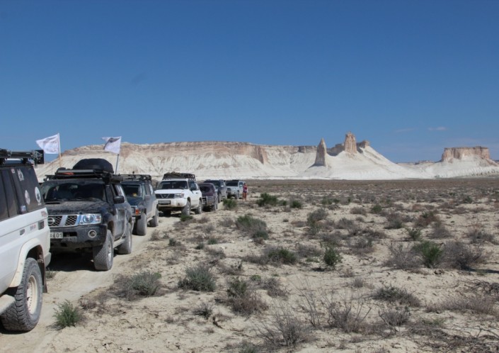 В Казахстане продолжается экспедиция по сакральным местам страны "Киелi Қазақстан", организованная Казахстанским национальным географическим обществом (QazaqGeography). Журналист Tengrinews.kz в составе экспедиции передает с места событий. Отдалившись на 300 километров от Актау, колонна из семи внедорожников с 25 членами экипажа доехала до самого живописного участка устюртского плато - Бозжира.