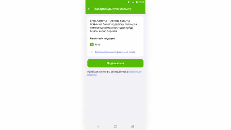 • Если доступных мест на нужный поезд не осталось, то можно подписаться на появление мест. В случае если кто-нибудь сдаст билет или откроются дополнительные места, на телефон придет уведомление.