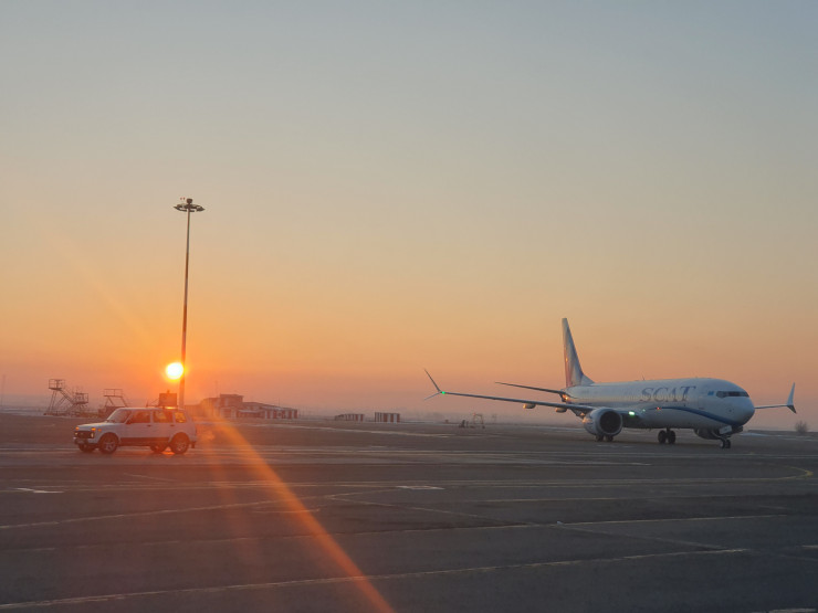 Самолет прибыл в Казахстан прямиком с авиационного завода в Сиэтле (США). Boeing 737-9- представитель нового поколения среднемагистральных пассажирских самолетов. Улучшения модели достигнуты за счет установки новых двигателей CFM International LEAP-1B, а также рядом новшеств в конструкции крыла и фюзеляжа. Первый самолет этого типа SCAT получил летом прошлого года, сделав Казахстан первым государством на Евразийском континенте, эксплуатирующим этот современный тип.