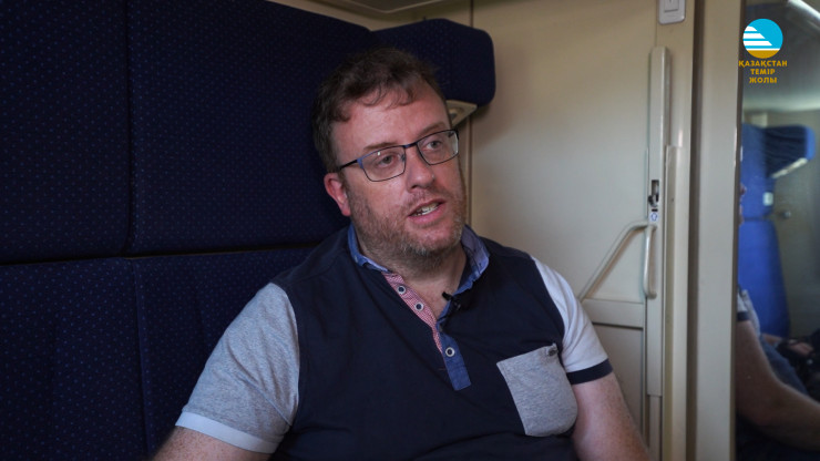 "Когда я смотрю на карту Казахстана, то у меня в голове не укладывается, насколько огромная у вас страна. У вас на железной дороге больше мер безопасности, например, перед посадкой в вагон мы проходили проверки. А покупая билет, нужно обязательно указывать номер паспорта и другие данные, у нас, в Шотландии, мы просто покупаем билет, никто у пассажиров не проверяет паспорт и не сканирует багаж", - делится впечатлением путешественник.