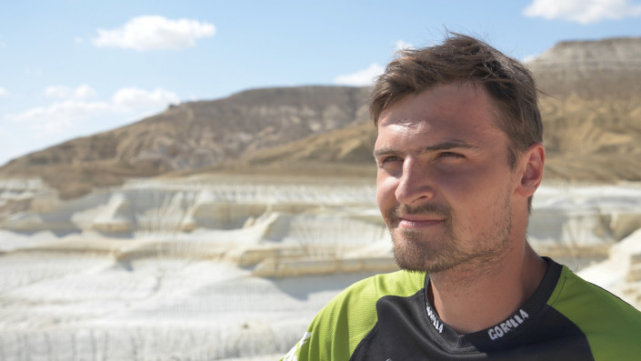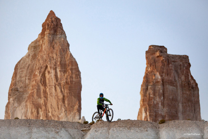 "Это были совершенно разные по формату поездки, от комфортных съемок в байк-парках Словакии, Австрии, Италии или Красной Поляне до экспедиций в Северном Приэльбрусье или Абхазии. Но такого длительного автотрипа и жизни в дикой природе, как сейчас на плато Устюрт в Западном Казахстане, у нас еще не было. У нас было довольно плотное расписание - для съемок оставалось всего 6 дней, и самым трудоемким моментом был поиск хорошего рельефа для катания, погода и освещение. Невыносимо яркий свет делал любые съемки до двух часов практически невозможными. Дневная температура достигала 42 градусов по Цельсию. Вот он, сентябрь в пустыне!" - поделился впечатлениями Петр Винокуров.