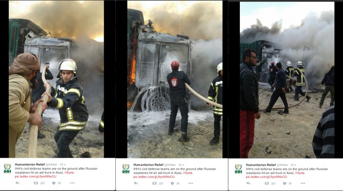 Гуманитарный конвой Турции подвергся авиаударам в Сирии Фото из твиттера @IHHen