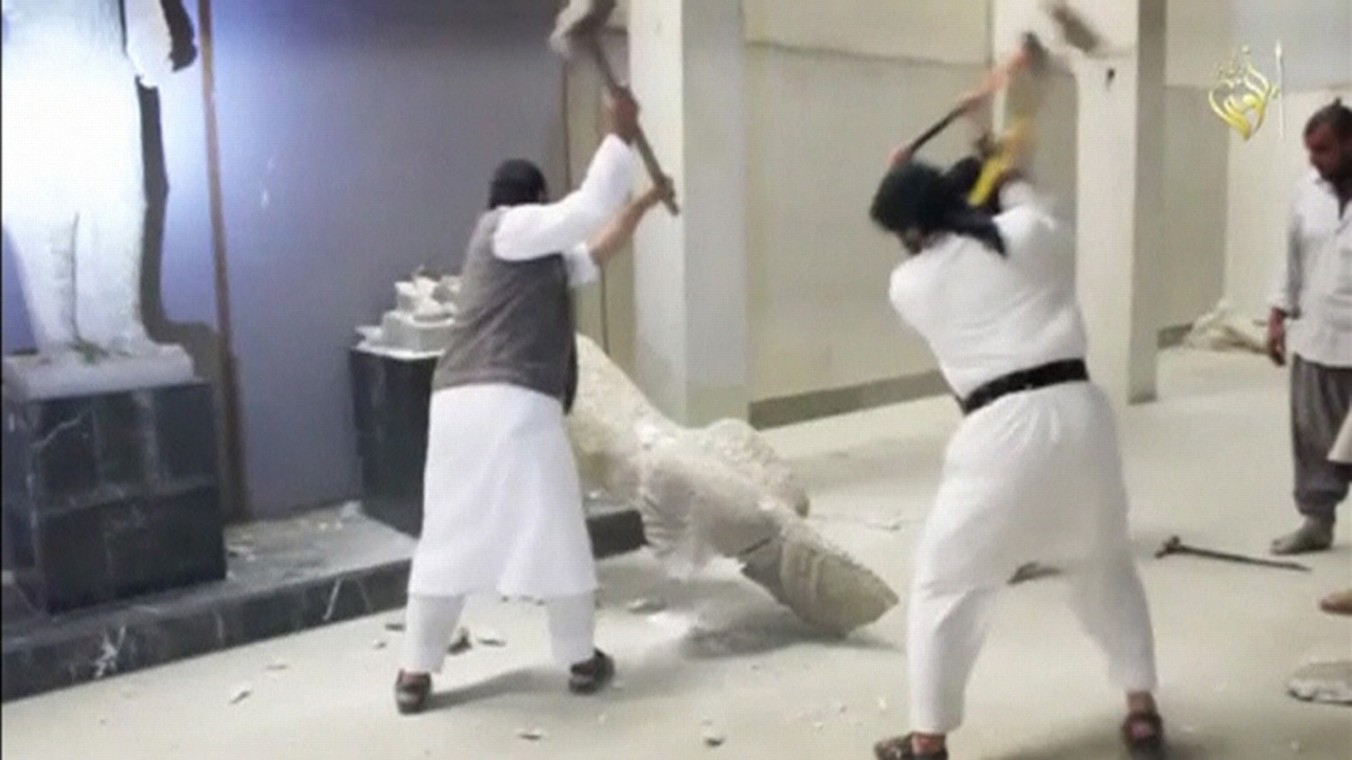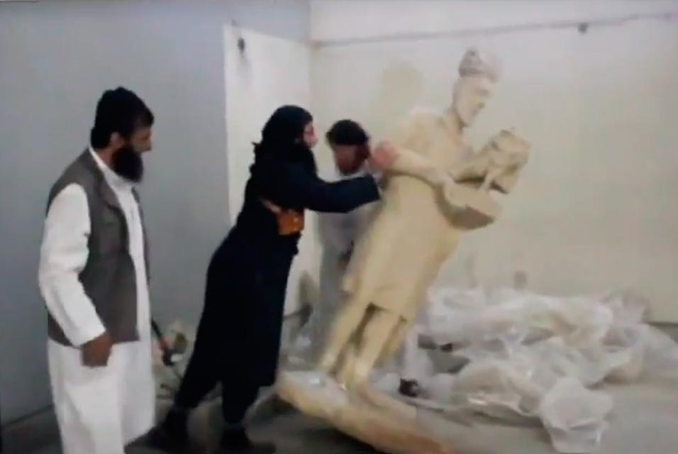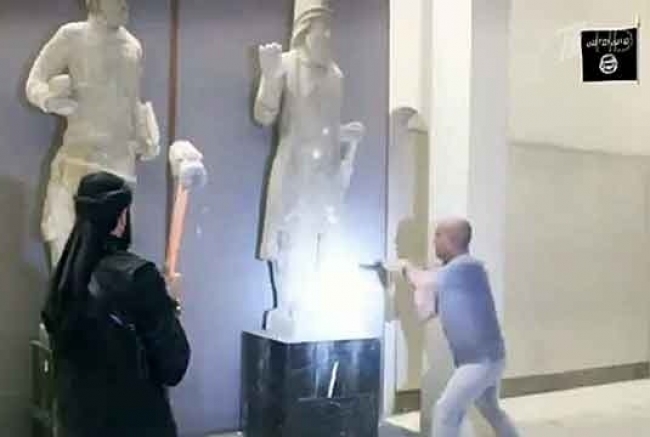 "Исламское государство" разрушает тысячелетние памятники культуры Вандалы в музее Мосула. Кадр видео с YouTube