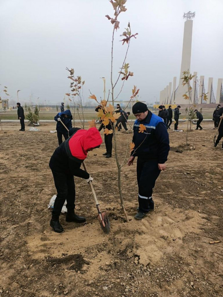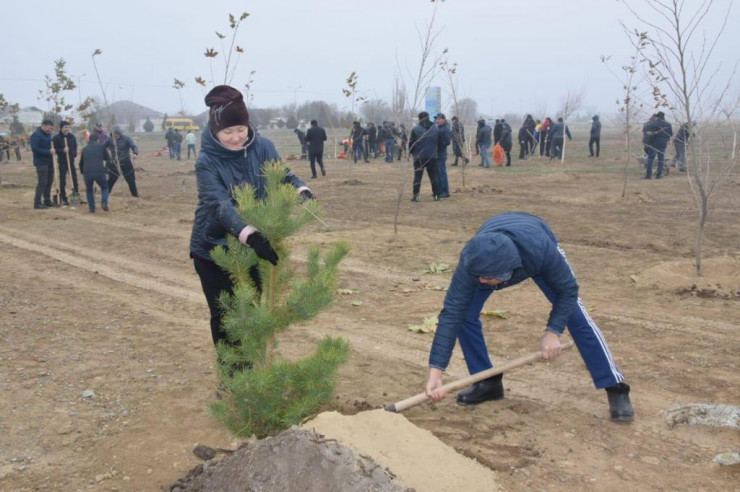 Сегодня в рамках экологического проекта "Жасыл желек – жердің көркі" в парке у монумента "Біз біргеміз" проведена посадка деревьев.