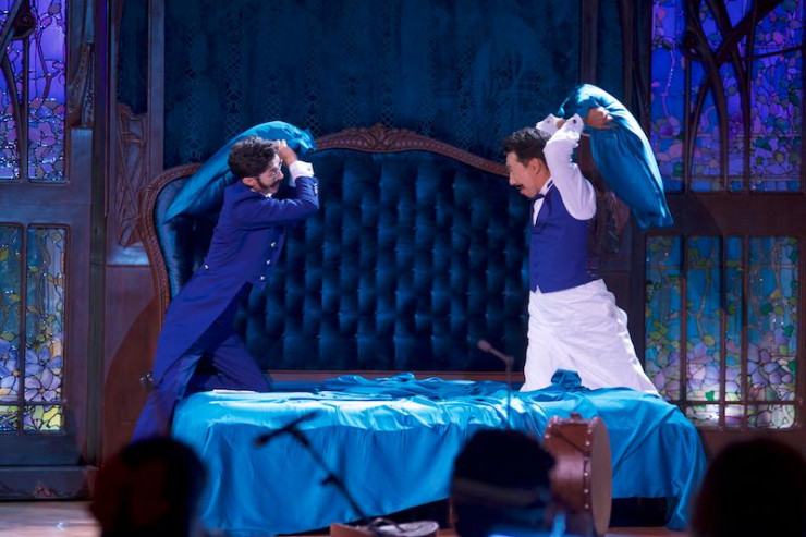 Первый акт начинается со сцены в спальне Дона Паскуле, которая, к слову, была сделана достаточно смело, оттого и у этого спектакля есть возрастные ограничения для просмотра. В обоих актах много юмора, притворства, остроумных выходок, а в последнем, втором, еще и разочарования, и разоблачения.