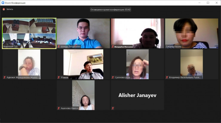 Утром 24 июня в военном суде в Нур-Султане начали рассматривать жалобу Жанзакова. Из-за карантинных мероприятий судебное заседание, как и другие по всей стране, проходит в формате видеоконференции. Участниками стали апелляционная судебная коллегия, прокурор, представитель потерпевшей стороны, осужденный Жанзаков, четыре его адвоката и родные.