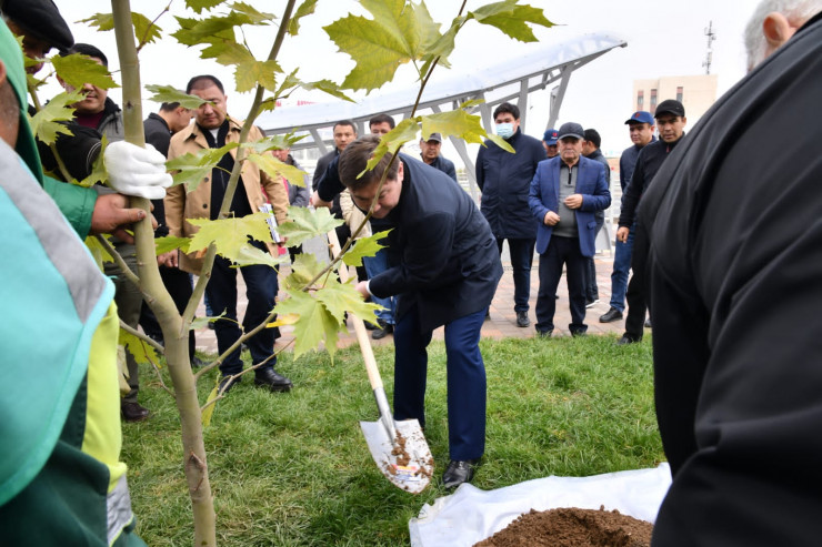 Группа во главе с акимом города высадила саженцы чинар, ознакомилась с дорожным движением и осмотрела пешеходные переходы.