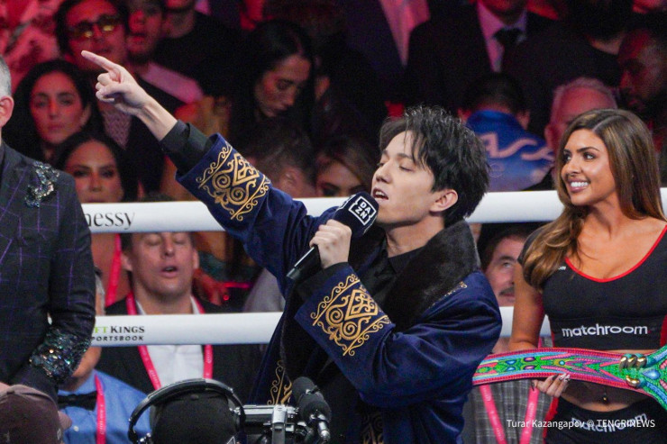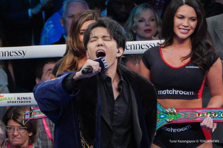 Перед началом поединка Димаш Кудайберген исполнил гимн Казахстана.