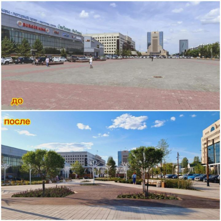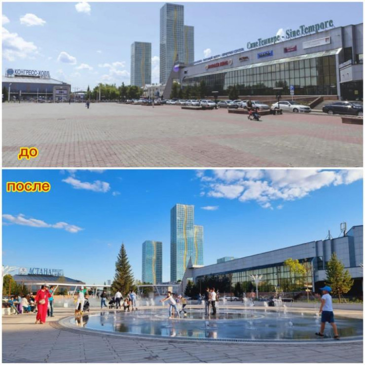 Фонтаны, сцена, навесы: как изменилась площадь перед акиматом Нур-Султана