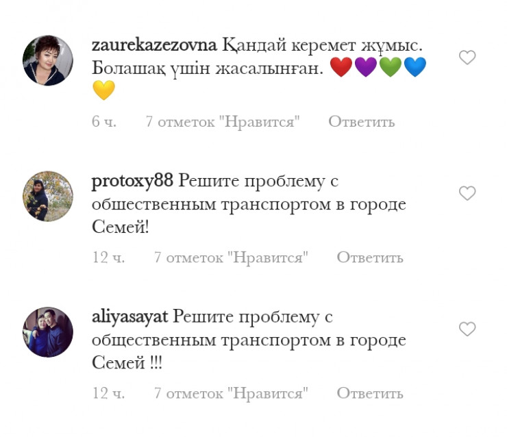 Под следующим постом Даниала Ахметова комментаторы продолжили писать просьбы о решении транспортного вопроса в Семее.
