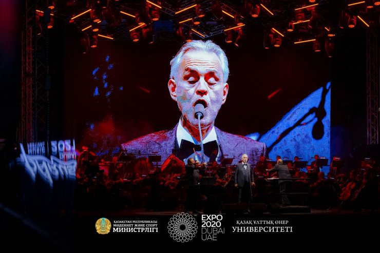 В рамках культурных мероприятий, приуроченных ко Всемирной выставке EXPO в Дубае, на открытой арене престижного района Jumeirah был дан исторический концерт всемирно известного певца Андреа Бочелли в сопровождении Казахского государственного симфонического оркестра, передает Tengrinews.kz.