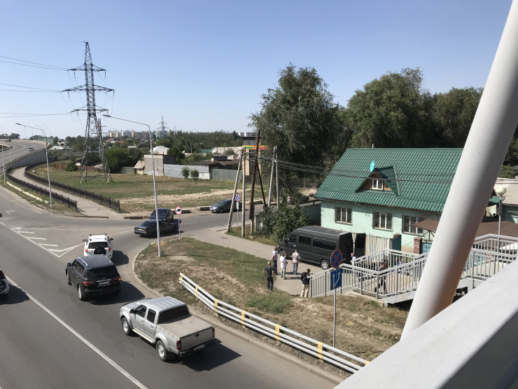 Рядом расположены оживленный проспект Рыскулова и транспортная развязка, которую построили в 2015-2016 годах.