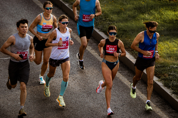В 7:40 стартовали полумарафонцы. На этой трассе также были поставлены новые рекорды. Среди мужчин победителем стал Ринас Ахмадеев (Татарстан). Его финишное время – 1 час 4 минуты 4 секунды, что и стало новым рекордом трассы на 21,1 километра. До этого рекорд на этой трассе принадлежал Шохруху Давлатову (Узбекистан) со временем 1 час 9 минут 1 секунда. Напомним, что Ринас Ахмадеев также побил рекорд трассы Nur-Sultan Half Marathon на 21,1 километра со временем 1 час 2 минуты 54 секунды. Среди женщин первое место заняла Сардана Трофимова (Кыргызстан). Ее результат – 1 час 12 минут 49 секунд - также стал новым абсолютным рекордом трассы.