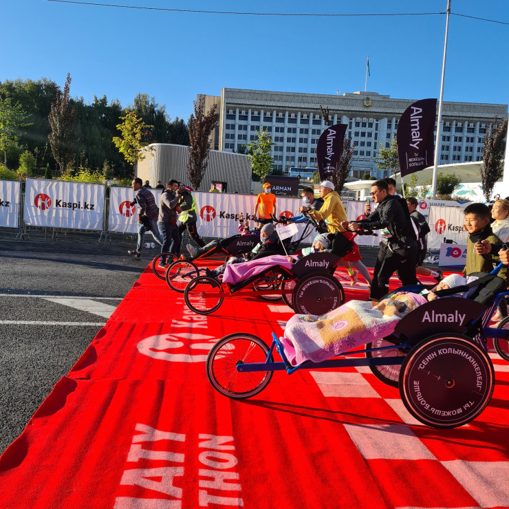Часть денег со стартовых взносов участников направляется на реализацию благотворительных целей. Всего за эти годы благодаря участникам и партнерам "Алматы марафона" было реализовано 22 благотворительных проекта в Алматы и Алматинской области. По итогам десятого "Алматы марафона", помимо двух спортивных площадок для детей в Алматы и Шелеке, будет построена спортивная база для бегунов в Алматы.