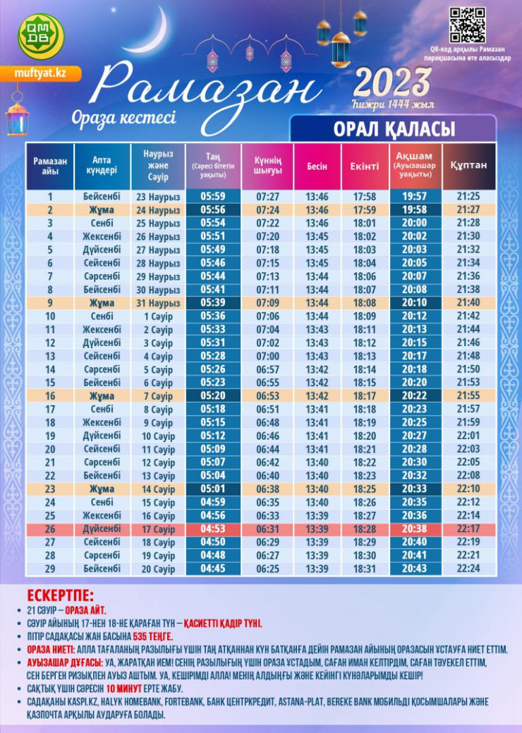 Ораза-2023 в Казахстане: Полное расписание