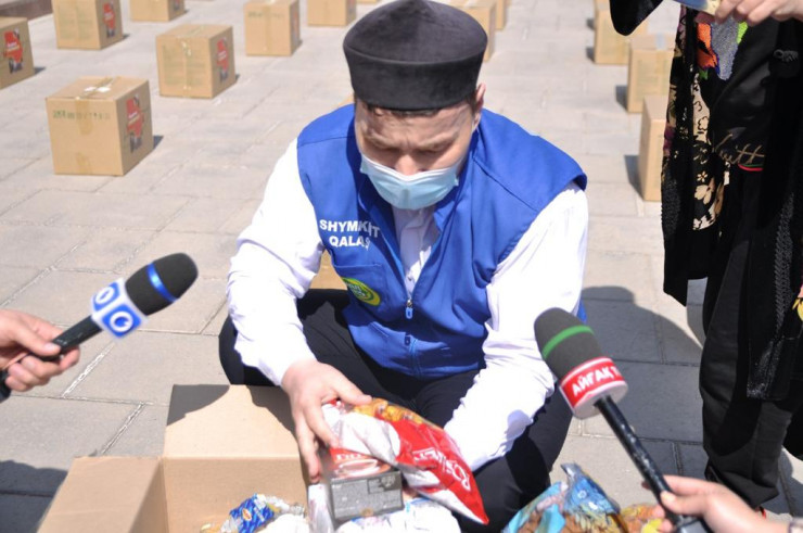 В Шымкенте стартовала акция "Рамазан - месяц благотворительности", инициированная акиматом города вместе с мечетями. В первый день священного месяца 1000 продуктовых наборов раздали у Aqmeshit.