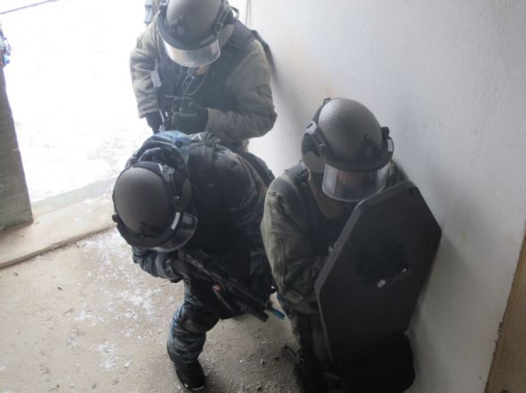Бойцы спецназа вышли на исходные позиции для штурма.