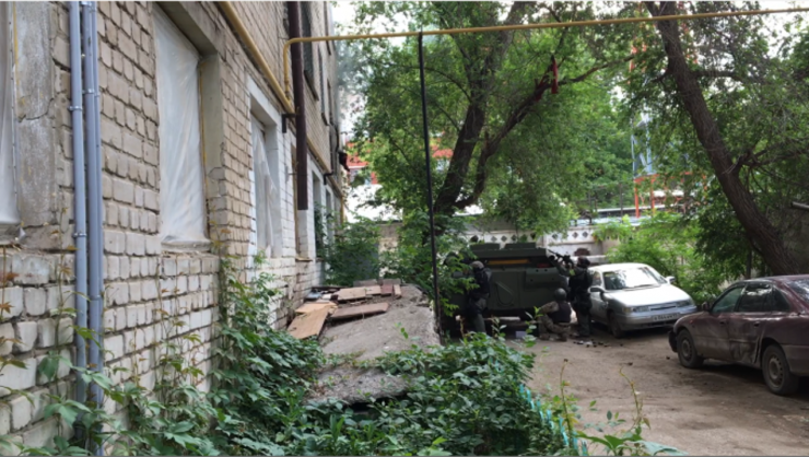Зная, что преступники укрываются в квартире на втором этаже, начать атаку было решено из квартиры этажом выше. Через пробитое в полу отверстие бойцы начали забрасывать террористов гранатами. Одновременно группа под прикрытием БТР осуществила залп по окнам квартиры из гранатометов. Эффект выкуривания дал свои плоды, и террористы потянулись к окнам, где были уничтожены снайперским огнем".