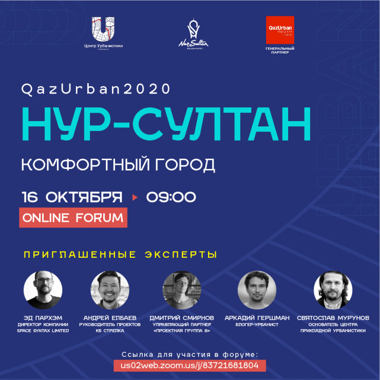 Ассоциация содействия развитию городов QazUrban совместно с акиматом Нур-Султана проводит форум урбанистов QazUrban Forum 2020 "Нур-Султан - комфортный город" с участием акима Алтая Кульгинова и известных российских урбанистов.