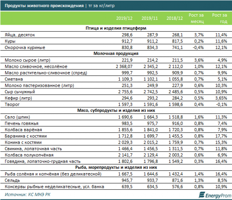 Среди продуктов животного происхождения за месяц заметнее всего подорожали яйца (+3,7 процента), сырое молоко (+3,6 процента), сало (+1,6 процента), соленая и копченая рыба (+1,4 процента) и сельдь (+1,3 процента).