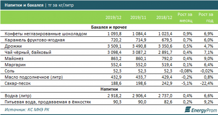 В сегменте бакалейных товаров и напитков заметного месячного роста (более чем на 1 процент) не наблюдалось, а некоторые товары, напротив, упали в цене: например, сахар подешевел на 5,1 процента.