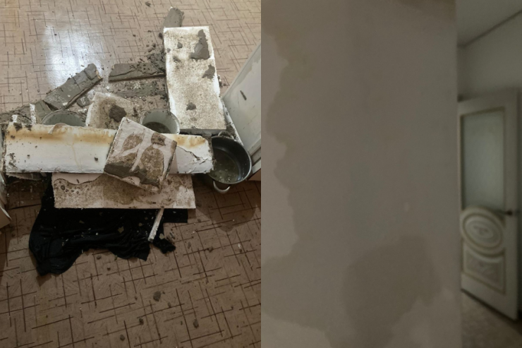 "Уже неделю вода стекает с крыши дома. Теперь я отправляю своих детей в школу по одному. Вчера одного из них не пустила на занятия, потому что надо приглядывать за квартирой. Сама в школе мою полы. Вчера вечером потолок в одной из комнат рухнул. Испугались. Из-за воды все стены расшатаны. От обоев ничего не осталось", - говорит Нургуль.