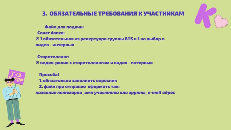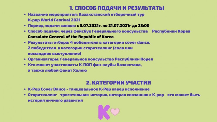 Кто может принять участие? Все любители K-pop - граждане Казахстана (соло или группа).