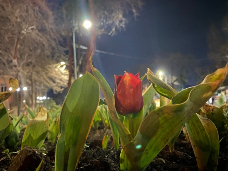 Тюльпаны распустились вдоль улиц Шымкента