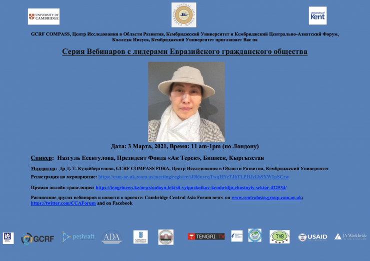 Модератор: доктор Диана Кудайбергенова, GCRF COMPASS PDRA, "Центр исследования в области развития" (Кембриджский университет).