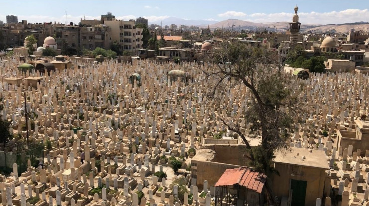 С крыши центра открывается вид на бесчисленное количество надгробий из белого мрамора с полувыцветшей арабской вязью, а на горизонте видна гора Касьюн, на которой, по библейскому преданию, свершилось первое в истории человечества убийство – Каин, сын Адама и Евы, убил своего брата Авеля.