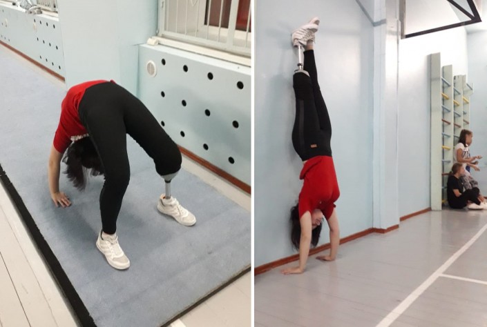 До ампутации Катя занималась в команде черлидеров. После травмы она продолжила посещать тренировки на общих основаниях: положив костыли рядом с собой, растягивалась, отжималась, делала мостик, качала пресс... После того как ей поставили протез и она научилась ходить (это большой труд на самом деле), девочка не пользуется коляской и ходит сама. И также продолжает заниматься спортом.