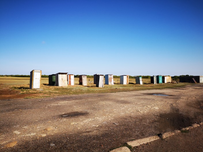 Признаться, в обычной жизни с уличными туалетами я сталкиваюсь нечасто. Например, на трассах в путешествиях по родной стране. Выйдя из автобуса, часто можно услышать знакомую с детства фразу: "Мальчики - налево, девочки - направо". Ведь, завидев зловонный бетонный или деревянный короб, многие в него не идут, предпочитая сделать дело в чистом поле. Также уличные туалеты - обычное явление не только для жилых, но и для административных зданий в аулах. Причем туалет в здании может существовать, но быть неподключенным.
