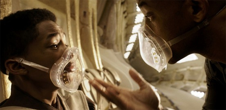 Побывав в теле робота и Мухаммеда Али, пройдя путь простого смертного Хэнкока и став легендой, Уилл Смит, в свои 44, оказался вполне готовым на роль Бога-отца или полубога, что, в принципе, одно и то же. Практически весь фильм он пребывает на одном и том же месте своей Голгофы - развалинах космического корабля. Со сломанными ногами, истекая кровью, отец отдает сына своего единородного на заклание жестокой и ядовитой Земле, с ветхозаветной надеждой на чудо спасения.