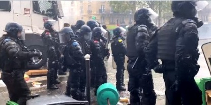 Участники несанкционированной акции в поддержку Палестины в Париже начали бросать в силовиков бутылки и петарды, в ответ полиция применила водометы, слезоточивый газ и резиновые пули,