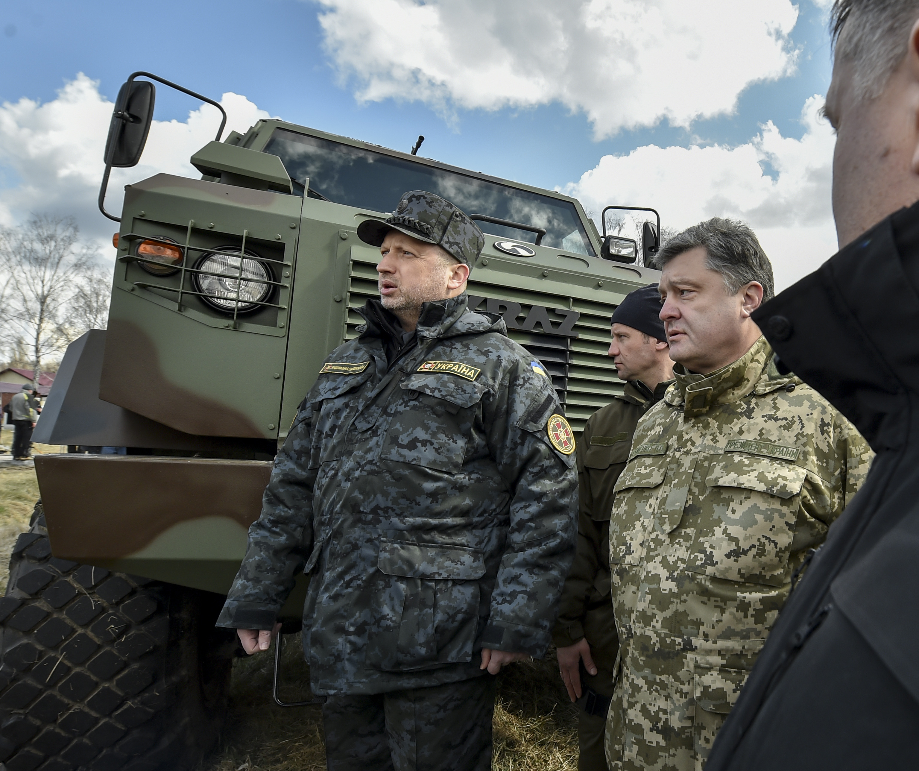 Президент Украины Петр Порошенко вместе с премьер-министром Арсением Яценюком, секретарем СНБО Александром Турчиновым и руководителями силовых ведомств сегодня посетили учебный центр Национальной гвардии, где осмотрел новейшие образцы вооружения и военной техники отечественного производства, передает корреспондент Tengrinews.kz.