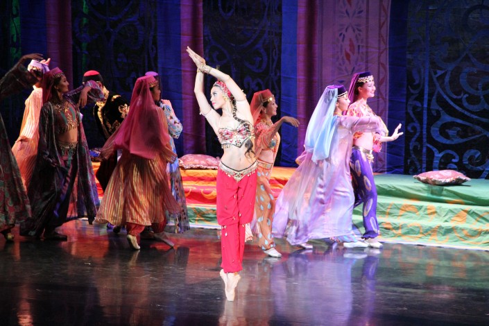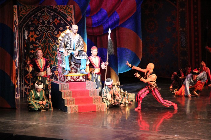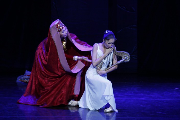 Действие спектакля "Бахчисарайский фонтан" разворачивается в Польше XVIII-XIX веков. Зрителей тронула драма юной Марии в исполнении солистки Жанель Тукеевой, в один миг потерявшей отца - князя Потоцкого (Улан Баденов) и жениха Вацлава (Рустем Имангалиев). Крымский хан Гирей в исполнении Азамата Аскарова и его любимая жена, а впоследствии отвергнутая Зарема (Наргиз Мирсеидова) заставили почувствовать весь накал страстей, разыгравшихся на сцене. Никого не оставила равнодушным преданность харизматичного военачальника Нурали (Асет Мурзакулов).