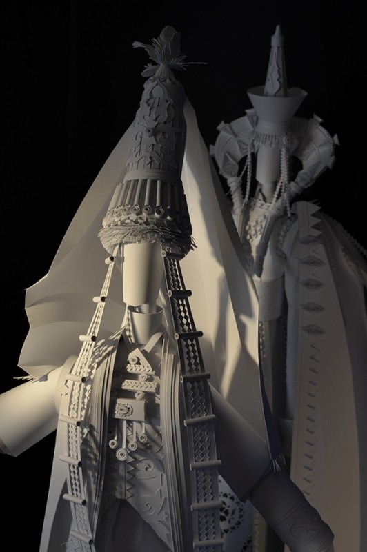 Модельер создает платья из бумаги невероятной красоты. Все началось с обычных кукол. "Бумага передает чистую, красивую градацию светотени. Для больших костюмов я использую ватман, для маленьких кукол более белую бумагу. На одну работу уходит месяц", - говорит Козина.