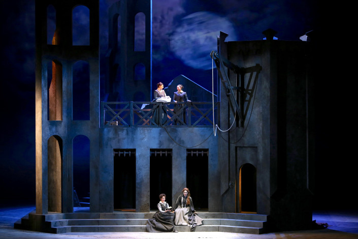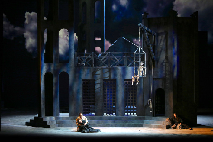 "Нашей главной целью было передать дух, атмосферу самого либретто, оперы. В первую очередь мы хотели прочувствовать и передать то, что композитор Верди хотел сказать в своем произведении. Буквально в октябре у нас была опера "Дон Карлос", тоже Верди. Эта работа просто плавно перетекла в "Трубадур". Поэтому мы даже не успели выйти из состояния оперы Верди", - говорит сценограф и художник по костюмам Софья Тасмагамбетова.