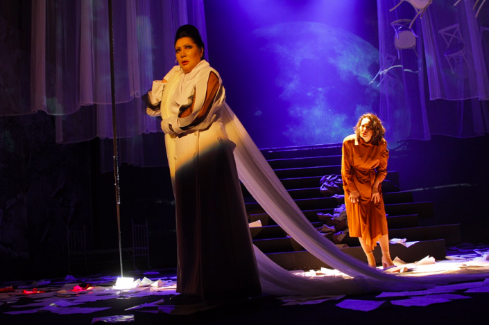 Эта полная эмоций история выполнена из тонкого психологического материала и раскрашена в мрачные, холодные краски. Так, что чувствуешь, как капли дождя, заливающего сцену, стекают по твоим щекам. И уже не понять, то ли это дождь, то ли твои слезы. А может быть, это вся боль и скорбь мира, рухнувшая на плечи женщины, всю жизнь окруженной разнокалиберными мужчинами, но остающейся одинокой.