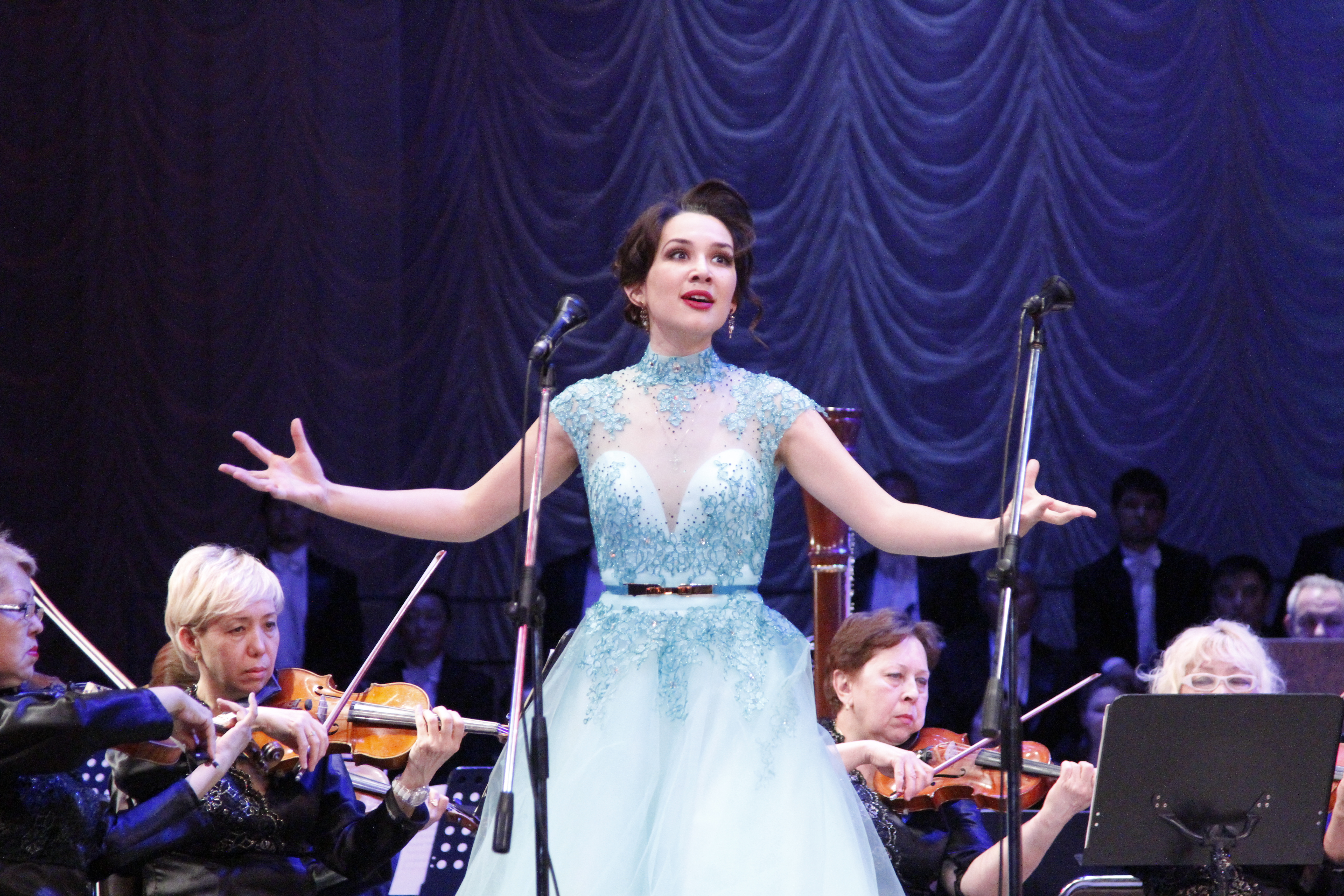 Солистка "Астана Опера" Мария Мудряк выступила для ветеранов в честь 70-летия Победы, передает корреспондент Tengirnews.kz. Бесплатный концерт прошел в Алматы в Казахском государственном академическом театре оперы и балета имени Абая. В нем также приняли участие ведущие солисты, оркестр и хор театра. Всего в зале Казахского государственного академического театра оперы и балета имени Абая собрались более 700 человек.