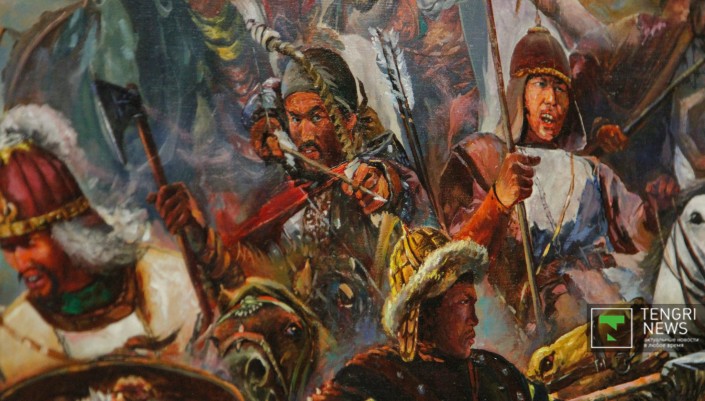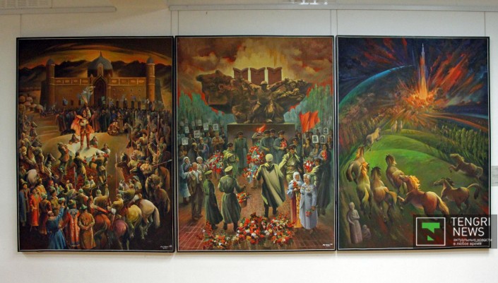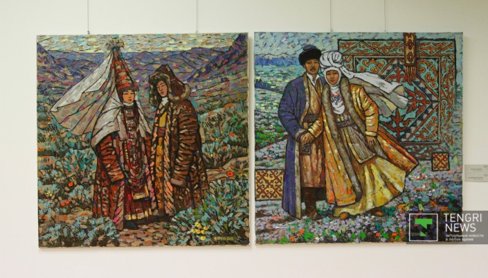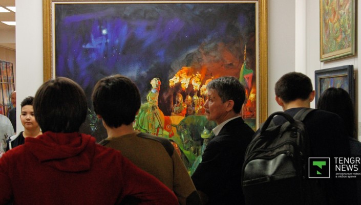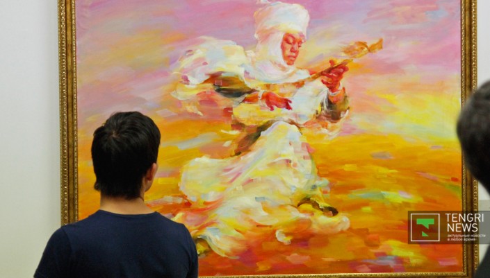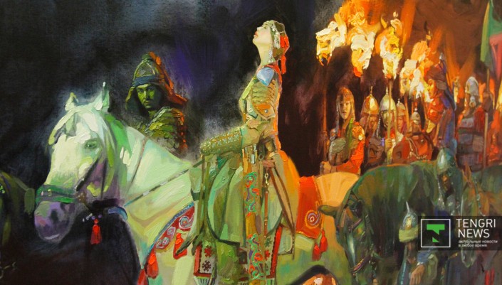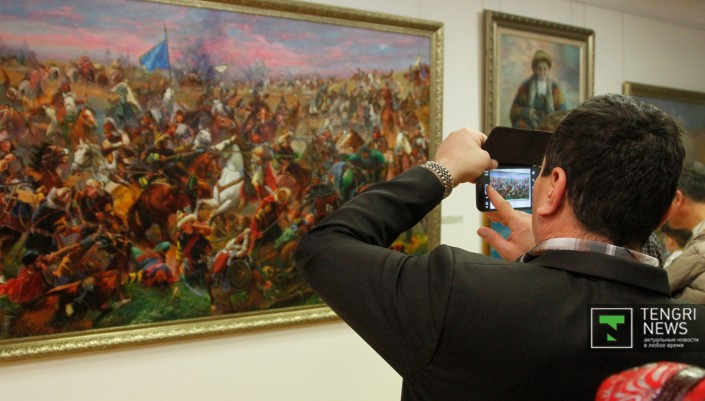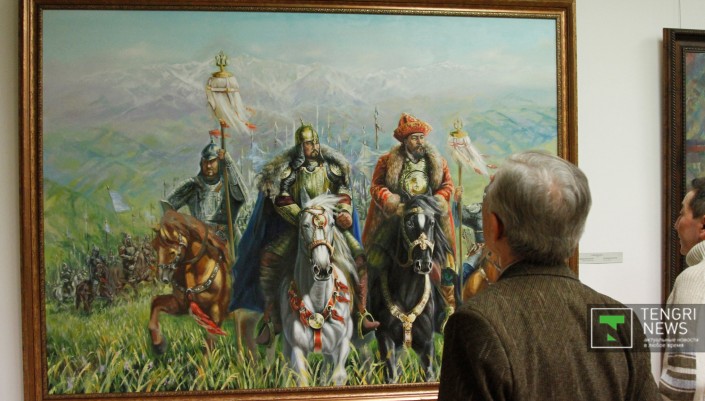 Наиболее распространенными в полотнах живописцев стали образы великих сынов казахского народа - легендарных батыров, прославленных ханов и наших современников - выдающихся деятелей культуры. Украшением живописного раздела выставки стали монументальные полотна "Мәңгілік ел" Серикбая Альжанова и "Анракайская битва" Ерлана Джалиева.