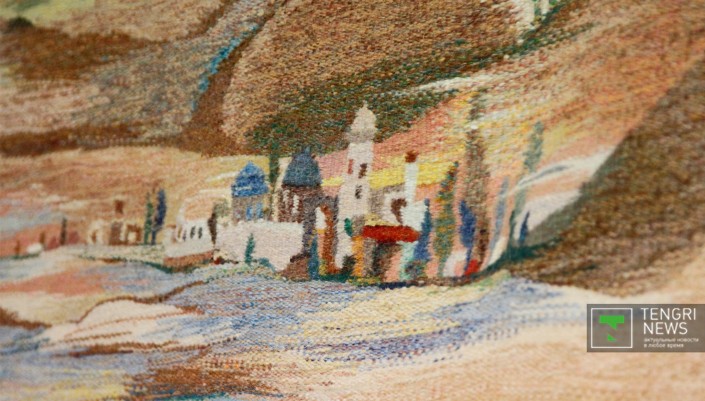 Выставка также демонстрирует многочисленные произведения декоративно-прикладного искусства. Это тиснение по коже, национальная вышивка кесте, ручная роспись по ткани, изделия из войлока, гобелены и другие работы, выполненные в разнообразных декоративных техниках.