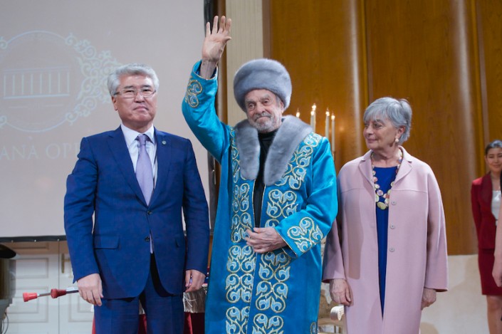 Министр культуры и спорта РК Арыстанбек Мухамедиулы вручил в "Астана Опера" орден "Достық" II степени за значительный вклад в культурное развитие страны, укрепление дружбы и сотрудничества между народами одного из самых выдающихся сценографов наших дней - Эцио Фриджерио.