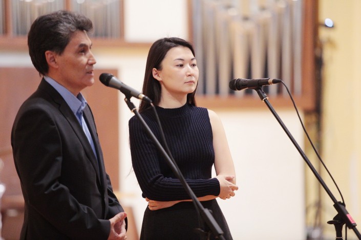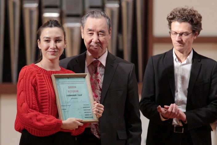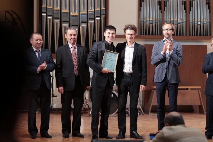 В финале конкурса, 30 ноября, молодые музыканты исполнили концертное произведение Моцарта и Глазунова в сопровождении оркестра "Камерата Казахстана" и Николаса Краузе. Представитель жюри из Франции в этот вечер выступил в качестве дирижера прославленного коллектива.