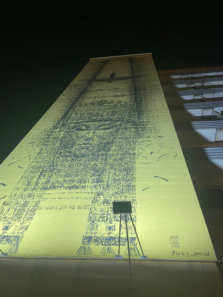 По словам автора, граффити - из серии "Инфинити". "Образ женщины, роль женщины сейчас актуальны как никогда. Если раньше говорили о батырах, о мужской половине, то пришло время говорить о достижениях женщины. Эти работы из моей серии 2016 года, которая посвящена маме и всем женщинам Казахстана. Здесь одна работа в теплых, а другая в холодных оттенках", - поделился Бейбит Асемкул.
