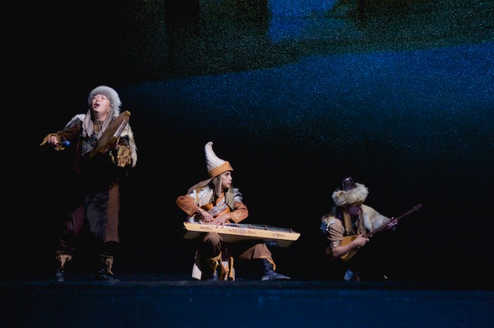 Во втором отделении зрителей ждал спектакль Sounds of Time, его сюжет основывался на мотивах либретто "Воздушное кочевье" казахстанского писателя Адама Капанова.