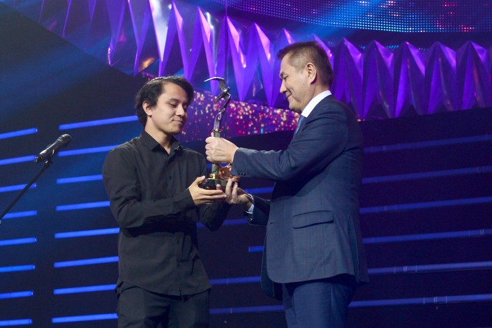 Церемония награждения победителей фестиваля и гала-концерт прошли в зале Дворца мира и согласия. Главный трофей "Шабыта" - Кубок Президента страны - Исламу Алиеву вручил заместитель акима столицы Ермек Аманшаев.